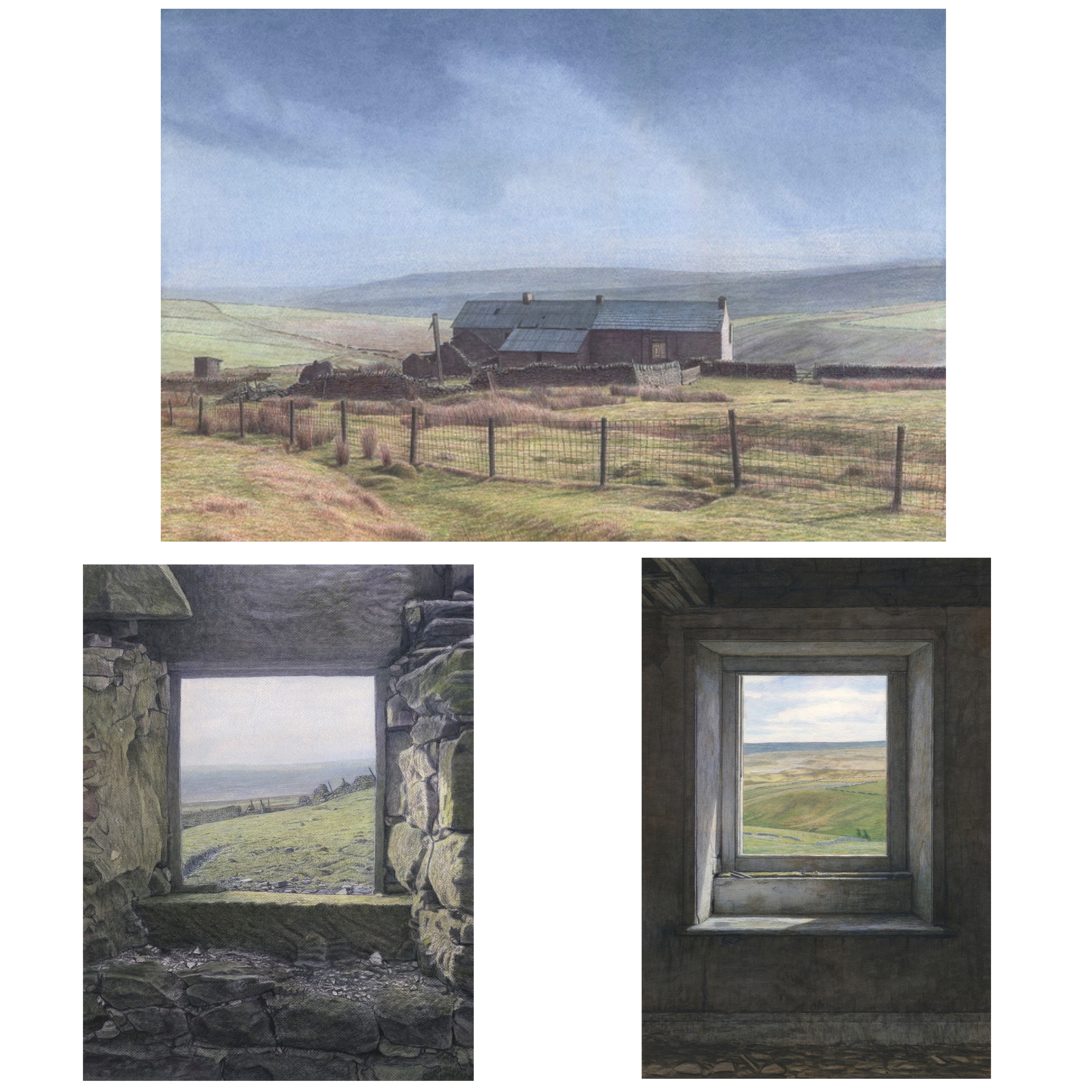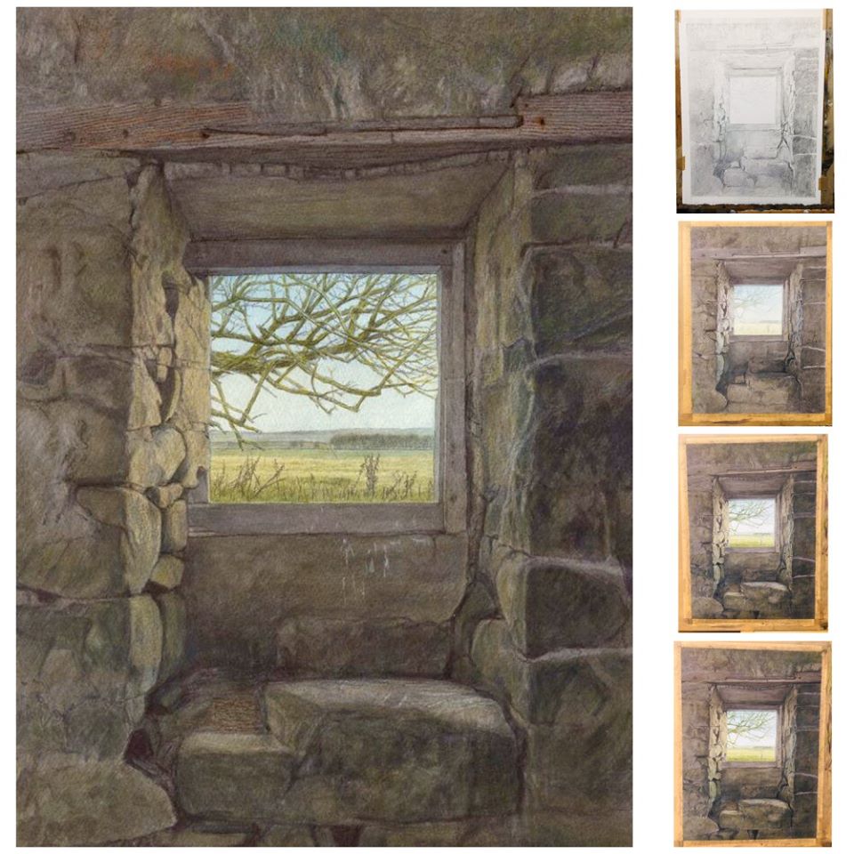 'Great Whittington Fell' is the painting Countryfile filmed me painting, and they asked to see this progressive sequence of the work developing. The window is probably an old pantry window and the abandoned building is just north of Corbridge and Stagshaw, near the Errington Cofffee House.