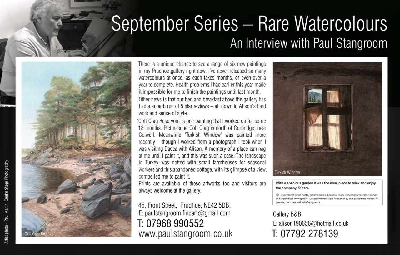 Thank you to the Tyne Valley Express for this feature about the latest six watercolours showing in my gallery this month. Visitors to the gallery are very welcome.